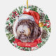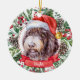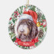 Diese raffinierte Drahthaarzeiger-Keramik Weihnachtsschmuck hat eine Aquarellfarbe eines hübschen braunen und weißen Drahthaar-Zeiger in einer Weihnachtsmannmütze, umgeben von Feriengärten, Pinecones und Beeren, mit einem roten Banner mit dem Namen Ihres Haustieres (oder Wechsel zu Frohen Weihnachten). Sie können dieses Design vollständig personalisieren, indem Sie den Gruß und das Jahr auf der Rückseite in einem eleganten Schriftart ändern. Das ist ein stilvolles, aber preiswertes Weihnachtsschmuck, das perfekt für Zeigerliebhaber, Drahthaar-Zeiger-Liebhaber, Jagdhundefans, Hundefreunde und Liebhaber von Haustieren ist.