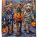 Adorable Drahthaar Pointing Griffons in spielerischen Halloweenkostümen tragen Kürbiseimer, während sie unter dem Himmel des Mondes tricksen oder behandeln. Dieses festliche Design hebt den schattigen Mantel der Rasse, die seelenvollen Augen und die freundliche Persönlichkeit hervor, die perfekt die gespenstische und dennoch lustige Atmosphäre Halloween-Abends einfangen. Ein herzliches Fest für Hundefreunde und Halloween-Fans gleichermaßen.