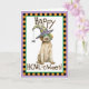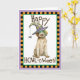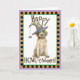 Verschicken Sie Halloween-Grüße mit dieser Karte eines niedlichen Griffon-Welpen mit einer grünen Maske und einer Hexenhut, die mit einer albernen Spinne verziert ist. Ideal für Kinder jeden Alters, die Drahthaar Pointing Griffons und Halloween Liebe haben. Viel Glück!