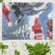 Drahthaar Pointing Griffon in Snow Christmas Hat Geschirrtuch