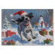 Ein Drahthaar Pointing Griffon läuft fröhlich durch die schneebedeckte Winterlandschaft und trägt einen festlichen, roten Weihnachtshut. Dieses lebendige Design hebt das schwache Mantel der Rasse, das Jagderbe und die liebevolle Persönlichkeit hervor und erweckt gleichzeitig die Wärme und Freude der Ferienzeit. Ein herzlicher Winterurlaub voller festlichen Charme.