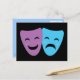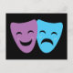 Diese Drama-Illustration zeigt eine lila lachende Comedy-Maske mit einem Lächeln und einer blauen, traurigen, gruseligen Tragik-Maske mit einem Frosch! Dieses klassische Theatermasken-Design ist das ideale Geschenk für einen Schauspieler oder Schauspieler oder für jeden, der Drama, Shakespeare oder darstellend auf der Bühne Liebe!