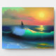Dramatische Ozeanwellen und Sonnenuntergangsreflek Fotoplatte