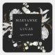dramatische Silberblumen-Monogramm-Hochzeit Quadratischer Aufkleber