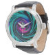 Dramatischer Schwarz-Türkis-Abstrakter Retro-Twirl Armbanduhr