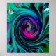 Dramatischer Schwarz-Türkis-Abstrakter Retro-Twirl Poster
