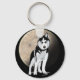 Dramatischer Schwarz-Weiß-Husky gegen Vollmond Schlüsselanhänger