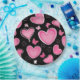 Rosa Herzen und Schmetterlinge auf schwarzem Hintergrund.