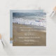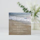 Eine romantische Hochzeitseinladung mit einem Bild der Wellen, die an einem traumhaften Tag auf dem Sand fließen. Schöne, wenn Sie eine Hochzeit am Strand planen.