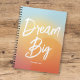 Dieses schöne Notizbuch / Tagebuch-Design bietet moderne Pinselkalligraphie in weiß über einen verwischten Sommer Horizont Hintergrund. Der Text auf der Vorderseite lautet "Dream Big". Personalisieren Sie dieses Notebook mit Ihrem eigenen Namen auf der Vorderseite. Das ist ein perfektes Notizbuch für jeden! Der gesamte Text ist anpassbar und editierbar. Dieses Notizbuch ist ein süßes Geschenk für einen Schüler zwischen, Teenager oder Uni!