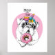 Bild von Afishka | Schotter. Bild-ID: 1229091874 | Adorable Welpe Mops in einer Einhornmaske: Perücke, Horn und mit einem rosa Donut. Traum wird wahr - Zitat schreiben.