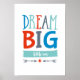 Traum Große kleine Jungen Poster drucken moderne handgeschriebene Typografie. Ideal für ein Kinderzimmer und Anzüge mit roter, blauer, aqua und grauer Dekoration.