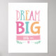 Traum Große kleine Mädchen Poster drucken moderne handgeschriebene Typografie. Ideal für ein Kinderzimmer und Anzüge mit einem Dekor in Rosa und Aqua.