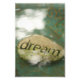 Foto eines Felsens mit "Dream"-Ätzen, die in einem Vogelbad schwebend und einen surrealen, andersweltreichen Effekt erzeugen. Sie können sich mit einer inspirierenden Nachricht anpassen, aber "Dream" sagt es einfach alles.