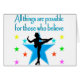 Dieser glitzernde Skater der Abbildung wird für dieses phantastische Skaten-Design mit blauen Sternen auf T-Shirts, Bekleidung, Wohngestaltung und Geschenken sorgen. Sei mit dem Skaten Zitat von Figure inspiriert. Alle Dinge sind für alle möglich, die glauben. Dieses hübsche Bild-Skaten-Design macht Weihnachten, Geburtstage und jede Gelegenheit zu einem phantastischen Geschenk. Zeigen Sie mit diesem tollen Skaten-Design auf, wie viel Sie Skaten Liebe haben und eine Eiskönigin sein. Geboren zum Skate!