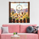 Western themed wall art. A rustic window with with a dream catcher looking out over desert cacti, and a canyon. Potted cactus line the window sill.