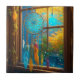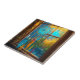Hübscher boho-blauer und orangefarbener Träumer mit Federn und Perlen in einem Fenster mit hübscher Outdoorszene. Ai wird im Illustrationsstil verwendet.