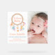 Bohemische Tribal Traumcatcher Schleife mit Perlen und Federn in Pastellfarben. Eine geschlechtsneutrale Geburtsankündigungskarte kann entweder für einen Jungen oder ein Mädchen verwendet werden. Passen Sie sich mit Ihrem Baby Foto und Informationen an.
