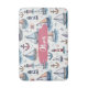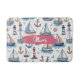 Diese personalisierte Badematte zeichnet sich durch spielerische Skizzen von Segelbooten, Ankern und Leuchttürmen mit hellen pastellfarbenen Aquarelltexturen in hellblau, lavender und pfirsichfarben aus, um einige Elemente zu füllen, was eine beruhigende, traumhafte Ästhetik verleiht.