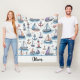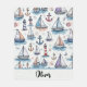 Diese personalisierte Decke zeigt spielerische Skizzen von Segelbooten, Ankern und Leuchttürmen mit hellen pastellfarbenen Aquarelltexturen in hellblau, Lavendel und Pfirsich, um einige Elemente zu füllen, und fügt eine beruhigende, traumhafte Ästhetik hinzu.