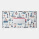 Diese personalisierte Schreibtischmatte zeichnet sich durch spielerische Skizzen von Segelbooten, Ankern und Leuchttürmen mit hellen pastellfarbenen Aquarelltexturen in hellblau, Lavendel und Pfirsich aus, um einige Elemente zu füllen, und fügt eine beruhigende, traumhafte Ästhetik hinzu.