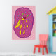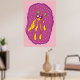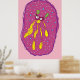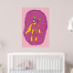 Traumschwimmer Cartoon Kreatur in Gelb und Rosa Hintergrundfarbe. Niedliche Wohngestaltung, Kinderzimmer Wandkunst.