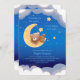 A dreamy baby shower invitation featuring a sleeping teddy bear on a glowing moon with soft stars in a night sky. This gender-neutral storybook design creates a cozy nursery feel and celebrates the joy of dreaming of a new arrival.