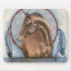 Dieses originelle Farbstiftdesign der Künstlerin Sandra Taylor Gale zeigt ein schönes Pferdeportrait, umgeben von einem amerikanischen Traumfänger mit Federn und Perlen.