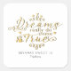 DREAMS WIRKLICH WIRKLICH WERDEN WAHREN Gold Gefall Quadratischer Aufkleber