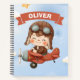 Dieses personalisierte Kids-Notebook verfügt über ein kleines, im Stil eines Cartoon gestaltetes Baby-Pilot, das ein winziges, Vintages rotes Flugzeug fliegt! Der niedliche kleine Pilot trägt einen klassischen braunen Hut und eine Brille. Ein rotes Banner steht über dem Design mit dem Namen Ihres Kindes.