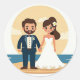 Enthält 20 kleine Aufkleber auf einem Blatt. Adorable Cartoon Aufkleber einer Braut und Bräutigam am Strand bei Sonnenuntergang, ideal für Hochzeitsdekor und Personalisierung.