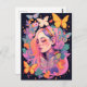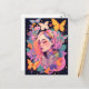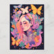 Eine wunderschöne Postkarte mit einem ruhigen Frauenporträt, umgeben von bunten Schmetterlingen und lebhaften Blume, die sich perfekt für eine Touch von Laune und Eleganz eignet.