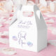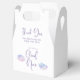 Dreamy und boho Mädchen's Baby Dusche Gefälligkeitsbox mit Aquarellbild von rosa und lila Wolken. Im Text steht: "Wir sind auf Wolke neun."