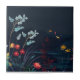 friedliche Naturszene mit bunten Blume. Der dunkle Hintergrund hebt die hellen Blume hervor und schafft ein friedliches und beruhigendes Gefühl. Die Blume sind in warmen Farbtönen wie Orange und Gelb gestrichen, und die coolen Farbtöne sind blau.