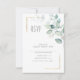 Feine, naturlich inspirierte Vegetationsarrangements inklusive blauem Kaugummi Eukalyptus mit Goldplätschern und Goldblattdrähten sowie einzigartige Design-Layouts machen dieses Set zu einem aufregenden Hochzeitsfest für jedes Jahr. Die hier gezeigte Hochzeitskarte RSVP weist einen Rand mit üppiger Blattlinie auf der Vorderseite und eine weiche Aquarellstruktur auf der Rückseite auf. Sehen Sie sich den Sammellink auf dieser Seite an, um alle passenden Elemente in diesem schönen Design zu sehen, oder suchen Sie ID817, um andere Teile und Farboptionen für dieses Set zu sehen.