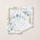 Delikate, folienartige Arrangements mit kleinen Akzenten in sanften, traumhaften grünen, goldfarbenen und staubblauen Blume mit Glitzer- und Goldplättchen, Eckrahmen aus Imitat und Folie bilden das Hintergrund für dieses elegante Set. Siehe ID817 , um weitere Produkte mit Design, einschließlich der passenden Hochzeitsbrieferei, zu sehen.