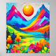 Eine ruhige und traumhafte Landschaftsmalerei mit einer farbenfrohen Bergkette und einem lebhaften Himmel. Dieses Kunstwerk ruft ein Gefühl von Ruhe und Ruhe hervor und lädt die Zuschauer ein, in eine Welt der Vorstellungskraft zu entkommen (Dieses Design aus KI). Bestellen Sie noch heute und Embrace the Joy of Shopping!