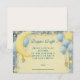 Ein traumhaftes Aquarelldesign mit leuchtendem Halbmond, umgeben von hängenden Sternen, flauschigen Wolken und festlichen Ballons in sanften Blau- und Goldtönen. Ideal für eine zauberhafte und himmlisch inspirierte Babydusche.
