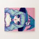 Eine kahle Hexe in Pastellrosa und lila Tönen. Sie hat große blaue Augen und einen düsteren Blick. Großartig für jeden, der Lieben niedliche Kunst im unteren Stil.