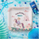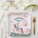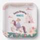 Dreamy Princess Riding Unicorn Square Papierplatte Pappteller