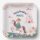Dreamy Princess Riding Unicorn Square Papierplatte Pappteller