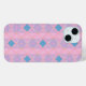 Dieses Handy-Gehäuse zeichnet sich durch eine wirklich romantische und deutlich feminine Ästhetik aus und verkörpert eine traumhafte, stilisierte Welt. Das primäre Muster ist ein gewagtes diagonales Gitter, bestehend aus weichen Pastel Pink und Lavender, das als Kulisse für wechselnde Motive dient: helle Sky Blue Diamanten und große, exquisit detaillierte zentrale Diamantformen.
