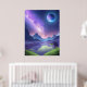 Das ist ein atemberaubendes Stück digitaler Kunst, das die perfekte Verschmelzung des riesigen Kosmos und einer fantastischen Landschaft vereint. Das Kunstwerk wird von lila und bezaubernden rosa Farbtönen dominiert und zeigt eine prächtige Lila Galaxie, die durch den Nachthimmel zieht und über dem sich ein riesiger blau-lila Planet befindet. Die Berge unten spiegeln sich in einem ruhigen, gläsernen See wider, der eine andere, weltliche Atmosphäre mit Geheimnissen und Fantasie schafft. Der lebendige grüne Vordergrund verleiht der Szene Vitalität und kontrastiert wunderbar mit dem coolen Kosmos. Dieses Design ist ideal für Käufer, die Science-Fiction, Weltraum, Romantik oder Fantasie-Kunst Liebe suchen. Ob auf Plakaten, T - Shirt, Telefonkissen, Kissen oder irgendwelchen Zuhause-Waren gedruckt, es fügt Ihrem Wohnraum eine einzigartige und faszinierende Touch von Farben hinzu.
