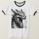 Erstellen Sie ein faszinierendes T - Shirt-Design mit einem weichen Aquarell-Hintergrund auf schlichtem, schwarzen Stoff. Mit einem skurrilen Drachen verziert, erinnert dieses Design an ein Gefühl der Fantasie und des Staunens. Ideal für diejenigen, die einzigartige künstlerische Ausdrucksformen der tragbaren Kunst zu schätzen wissen. Lass deiner Fantasie mit dieser traumhaften, handgefertigten Schöpfung in die Höhe.