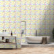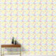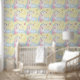 This is the ideal wallpaper to turn any space into a serene and luminous dream kingdom! Featuring a delicate repeating design of an adorable unicorn in pastel pink and blue, it soars among soft clouds, golden crescent moons, and twinkling stars against a light and welcoming yellow background.