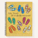 Die farbenfrohen Flip Flops auf einem goldenen gemusterten Hintergrund. Text auf der Vorderseite lautet: "Entspannen Sie sich... Entspann dich... Komm in einen gedreht Staat des Geistes." Organisieren Sie sich mit diesem lustigen Spiralnotebook. Maße: 8,5" w x 11" h Seitenzahl: 60 Blätter, 120 Seiten. 60 lb. haltbares glattes Papier. Wähle zwischen 6 verschiedenen Spiralfarben. Wähle aus 8 Designs für die Seiten. CPSIA-konform.