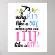 Gymnastik Plakatdekoration mit dem Text "Warum rennen wie ein Junge, wenn man wie ein Mädchen drehe".... Es hat eine Gymnastik-Silhouette und gelbe Sterne. Der Text ist schwarz, blau und rosa. Ihr Gymnast wird das Liebe haben! ©gollygirls.com