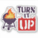 Dieses Design zeigt einen GRILLEN-Grill mit hohen Flammen und den Worten "Turn it Up". Fragen Sie es nicht, es ist nur, wie wir es tun!