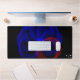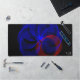 Diese Schreibtischmatte zeichnet sich durch ein einzigartiges, rotierendes blaues, geometrisches 3D-Kreisdesign aus. Eine tolle Idee für ein Zuhause-Studio, ein Zuhause-Büro, einen Arbeitsplatz oder einen Labrador für Schulcomputer.