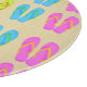 Fügen Sie Art Ihrer Küche hinzu und Unterhaltungsbereiche mit diesem drehen das runde Reinfall-Glasschneiden-Brett (12") das einen sandigen Hintergrund kennzeichnet um, bunt umdrehen Reinfälle in Lila, in Gelbem, in Blauem, in rosa und in Grünem mit orange Blumen. Vervollkommnen Sie für Zuhause, Büro oder Strandhaus. Macht auch ein wunderbares Housewarminggeschenk! Viele zusammenpassenden Produkte sind auch in unserem Geschäft verfügbar. Gemacht mit Hand-gepresstem ausgeglichenem Glas, sind diese ins Auge fallenden Schneidebretter für prepping und das Dienen groß.